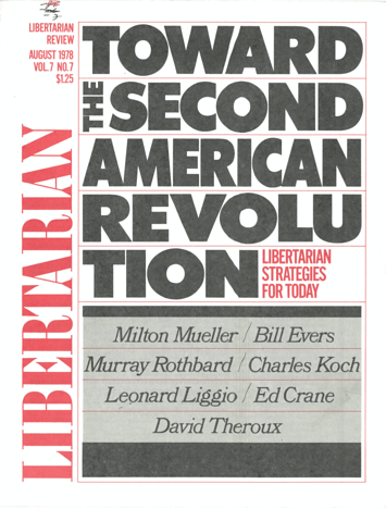 Libertarian Review, August 1978 Libertarian Review Vol. 7 No. 7 Aug 1978 Libertarian Review, August 1978 Table of Contents . Toward a Libertarian Theory of Revolution By Milton Mueller Read Online . Strategies for a Libertarian Victory By Murray Rothbard Read Online . The Business Community: Resisting Regulation By Charles Koch Read Online . Lessons for Libertarian Campus Radicalism By David Theroux Read Online